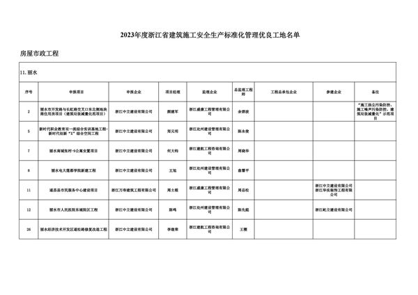 浙江中立建設(shè)有限公司在2023年度“建筑施工安全生產(chǎn)標(biāo)準(zhǔn)化管理優(yōu)良工地”評(píng)選活動(dòng)中,獲得了豐碩成果。1個(gè)項(xiàng)目榮獲全國(guó)建設(shè)工程項(xiàng)目施工工地安全生產(chǎn)標(biāo)準(zhǔn)化學(xué)習(xí)交流項(xiàng)目;7個(gè)項(xiàng)目榮獲浙江省建筑施工安全生產(chǎn)標(biāo)準(zhǔn)化管理優(yōu)良工地,其中1個(gè)項(xiàng)目被評(píng)為“建筑垃圾減量化”示范項(xiàng)目;16個(gè)項(xiàng)目榮獲麗水市建筑施工安全生產(chǎn)標(biāo)準(zhǔn)化管理優(yōu)良工地。