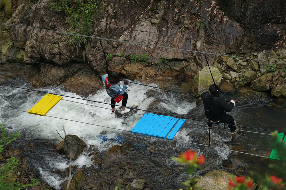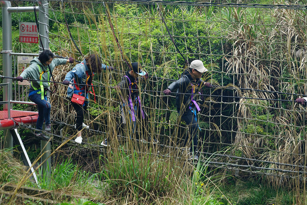 早上9點,在董事長和總經理的帶領下,大家到達目的地,員工們便開始了拓展穿越活動,大家團結協作,挑戰自我,突破一關又一關的項目,最終成功到達終點,大家臉上都洋溢著自信笑容。