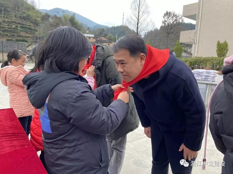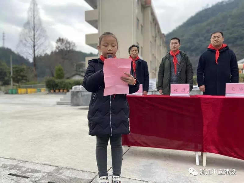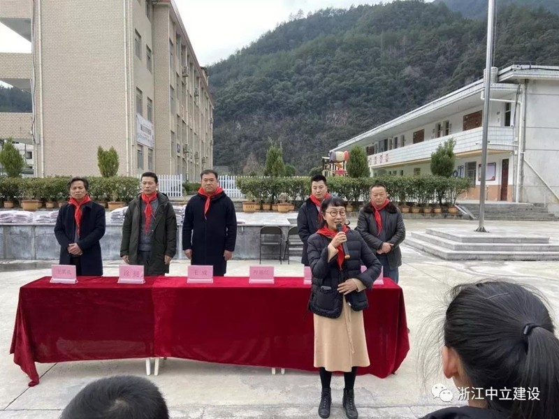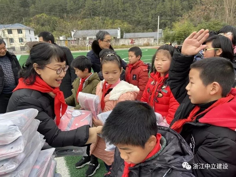 新年伊始,恰逢臘八,浙江中立建設(shè)有限公司帶著81套校服走進(jìn)遂昌大山深處的黃沙腰小學(xué),給大山里的孩子送去冬日里的溫暖。公司副總經(jīng)理葉麗紅、項(xiàng)目負(fù)責(zé)人曹亮、黃沙腰鎮(zhèn)鎮(zhèn)長毛威、黃沙腰鎮(zhèn)人大主席涂挺、遂昌縣教育局黨組成員王其孔、黃沙腰小學(xué)校長葉益明出席了捐贈儀式。在捐贈儀式上葉麗紅希望同學(xué)們刻苦學(xué)習(xí),立志成才,不負(fù)韶華,回報社會,回報祖國。葉校長致辭對捐贈校服的善舉表述了衷心的感謝。校優(yōu)秀少先隊(duì)員王夢媛致感謝詞:“叔叔阿姨們,請相信我們,我們會努力學(xué)習(xí),去創(chuàng)造一片屬于自己的絢麗天空;我們會努力學(xué)習(xí),早日成為國家的棟梁,為家鄉(xiāng)建設(shè)貢獻(xiàn)自己的力量。我們堅信一定不會讓你們失望!”